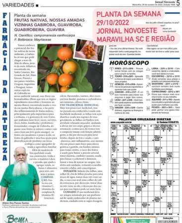 N.C Campomanesia xanthocarpaF. Botânica Mayrtaceae Planta da semana 29/10/2022 jornal Novoeste Maravilha SC e região