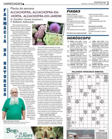 N.C Cynara scolymusF. Botânica Asteraceae Planta da semana 11/06/2022 jornal Novoeste Maravilha SC e região Planta da semana 19/08/2023 jornal Novoeste Maravilha SC e região.