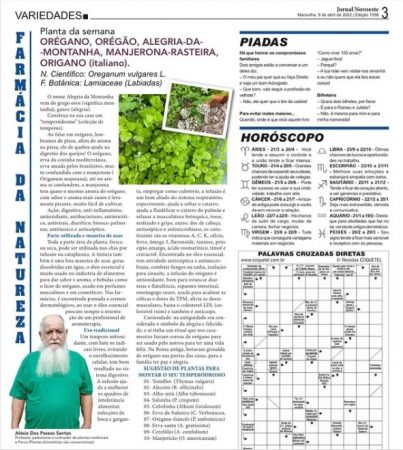 N.C Oreganum vulgares Planta da semana 09/04/2022 jornal Novoeste Maravilha SC e região