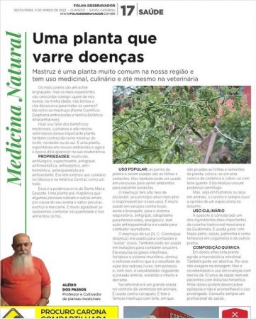 N.C Dysphania ambrosiodes Planta da semana 11/03/2022 folha Desbravador Chapecó e região. E esta publicação é especial pois completa o aniversário de 01 ano da