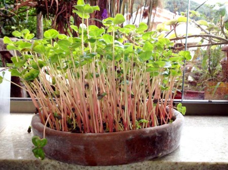 Estas sementes da foto germinaram na soleira da minha cozinha. Você pode cultivar os brotos germinados a partir de sementes orgânicas até em apartamento. Terá