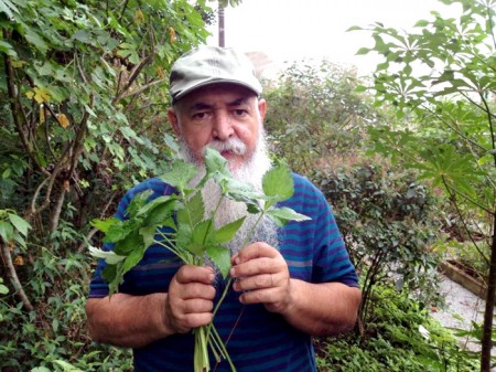 Ganhei a primeira muda desta planta numa visita ao convento do município de Rodeio (SC). Mitsuba, que possui três folhas, significa três alimentos em uma